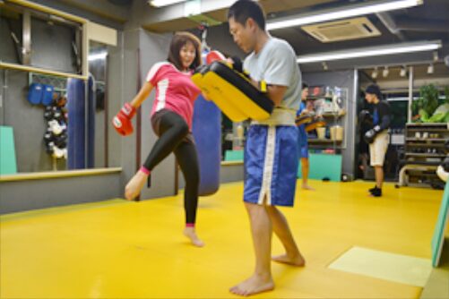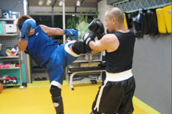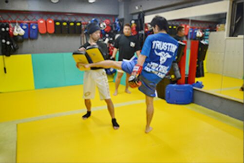 安全面を重要視しつつ本格的なキックボクシングを指導致します。パンチ・キックを中心としたミット打ちトレーニング、マスタースパーリングなどが主たるメニューです。試合出場を目標とする方にも対応致します。